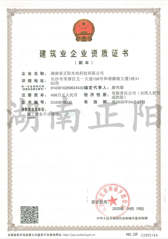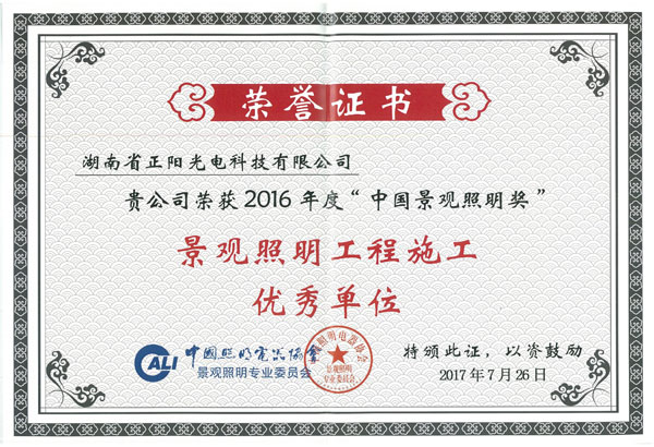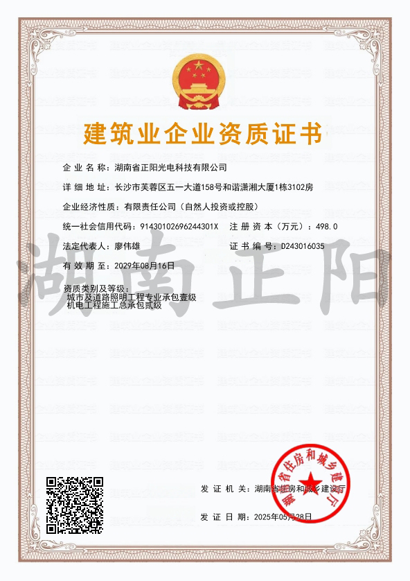 湖南省正陽光電科技有限公司是一家從事亮化工程及大型燈光藝術(shù)的設(shè)計(jì)、制作、安裝和維護(hù)于一體的專業(yè)化公司。公司資質(zhì)齊全、管理嚴(yán)謹(jǐn)、技術(shù)先進(jìn)、實(shí)力雄厚,取得了城市及道路照明工程專業(yè)承包壹級(jí)資質(zhì)、照明工程設(shè)計(jì)專項(xiàng)甲級(jí)資質(zhì)、機(jī)電工程施工總承包貳級(jí)資質(zhì)、施工勞務(wù)等資質(zhì)、國(guó)家高新技術(shù)企業(yè)、國(guó)家“重質(zhì)量·守誠(chéng)信”示范企業(yè)。